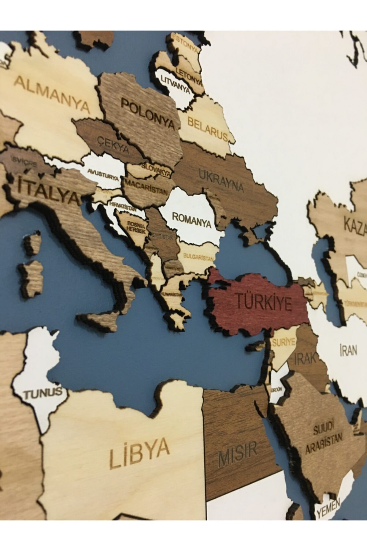 Tek parça halinde gelen bu harita tablosu, kolay montaj avantajı sunar ve ekstra parçalarla uğraşmanıza gerek kalmaz; Doğal ahşap malzemesiyle hem dayanıklı hem de estetik bir görünüm sağlar; evinizin veya ofisinizin dekorasyonuna sıcak ve otantik bi